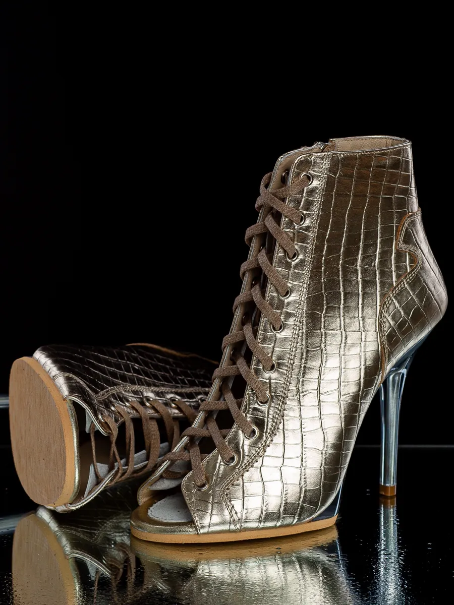 Туфли-хилсы LIZARDI в сияющем золотистом цвете — это синоним победы, роскоши и сценического величия. Каждая пара — это не просто обувь, а настоящее украшение для ног, которое превращает любое выступление в торжественное событие, наполняя его блеском, энергией и королевским величием.